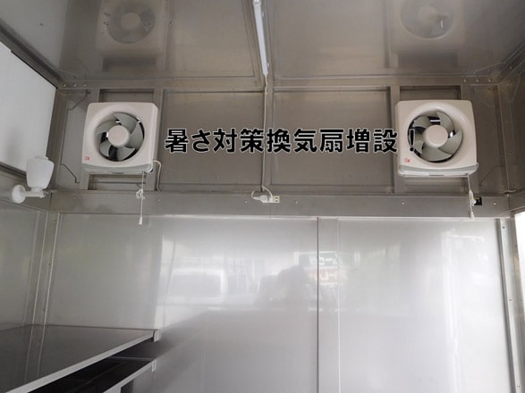 調理場はダブル換気扇で暑さ対策もバッチリです。そして、なんといってもオールステンレス製だから清潔感抜群。長く愛用いただける一台になっています。