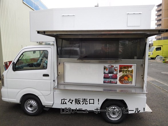 さらに、お客様とやりとりする広々カウンター部分にはLEDのメニューボードも付いてるので存分に料理のアピールが出来ますよ。