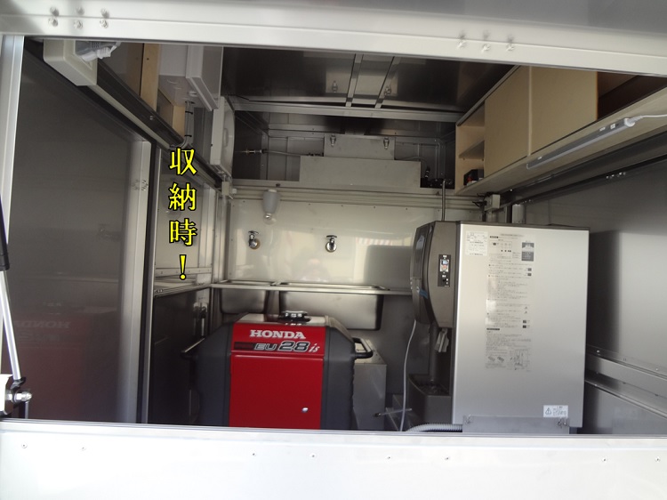 重い発電機はスライド式で出し入れスイスイ楽々操作できます。