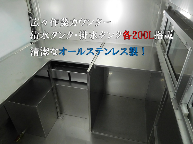 ステンレス製の清水タンク200L・排水タンク200Lを搭載した