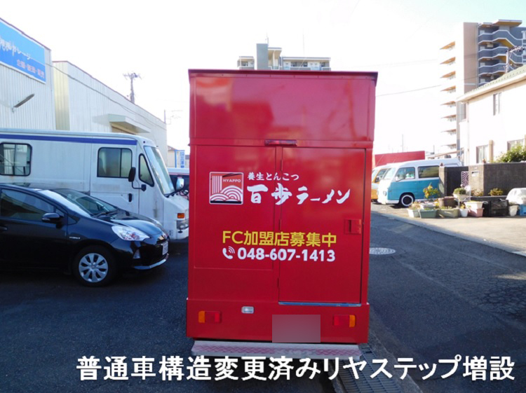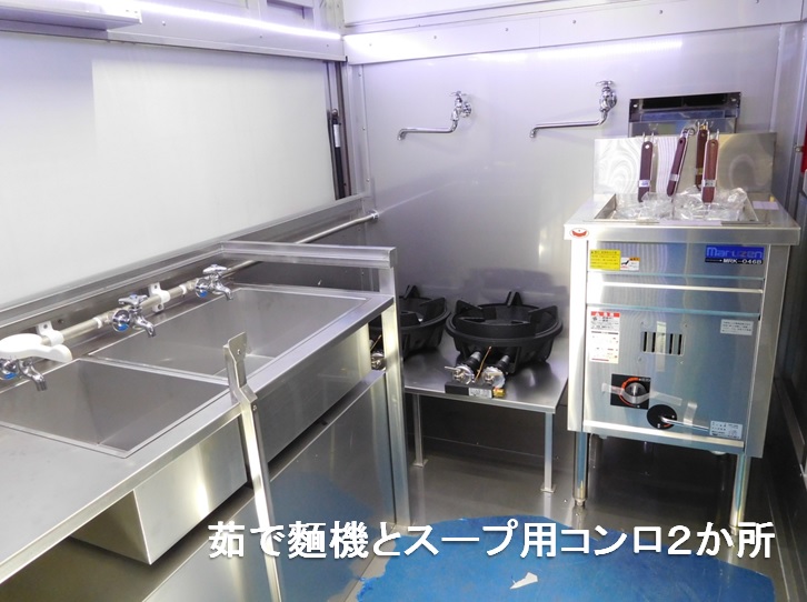 保健所新基準(2021年6月食品衛生法改正)対応のステンレス製の清水タンク200L・排水タンク200Lを搭載した車内仕込み調理ができるキッチンカーです。