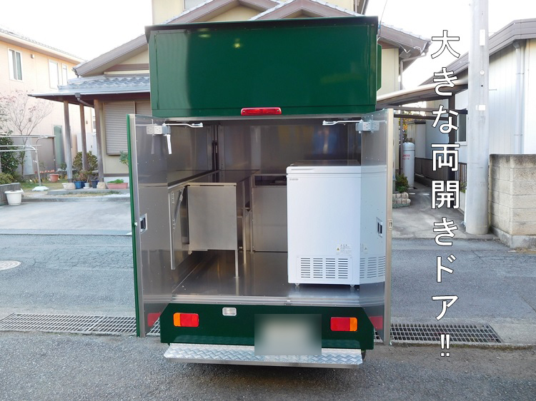 リヤは左右両開きのドアにしたので、大きな冷凍庫も搭載でます。