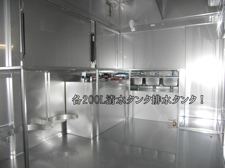 保健所新基準対応のステンレス製清水タンク200L・排水タンク200Lを搭載した
