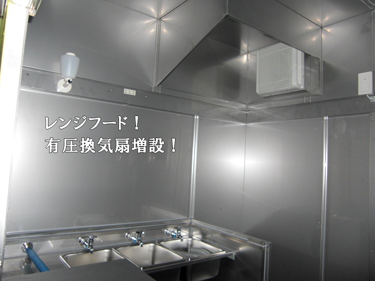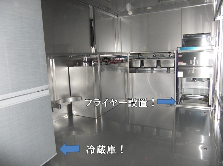 ステンレス製3槽シンク、フライヤーを搭載しています。